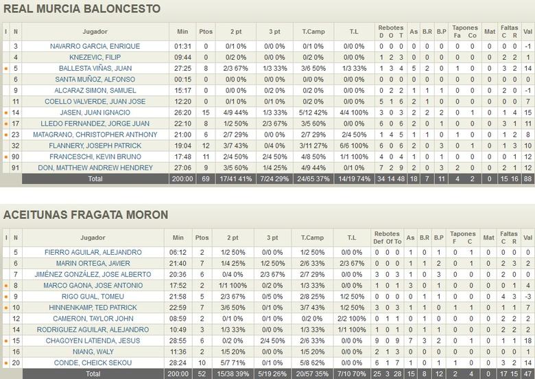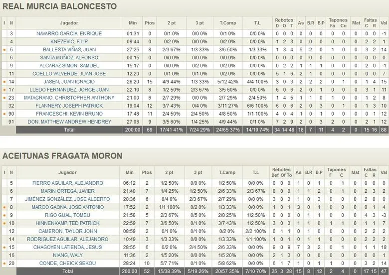 Juan Ignacio Jasen fue una semana más el hombre referencia rojillo con 15 puntos, 3 rebotes, 2 asistencias y 2 recuperaciones, junto a un duro Flannery (12 pts, 6 reb. 2 ast) y un intenso Matt Don (9 pts, 9 reb). En Morón destacar a Jesús Chagoyen (6 pts, 9 reb) y a Cheick Conde (10 pts, 7 reb) como el único jugador con dobles dígitos en anotación por su equipo.