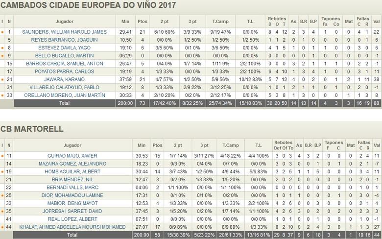 Partido sin historia en la pista de Cambados, a pesar de que Martorell se fuera dominando el primer cuarto (19-20), no fue rival para un Xuven que supo encontrar su juego y sacar del partido al rival a base de defensa y un ataque dinámico y sin precipitaciones.
