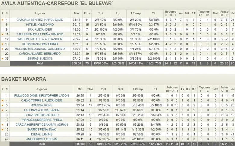 El último cuarto, el oficio y buen hacer de los abulenses chocó con las prisas navarras, los ataques pausados de los locales frenaban el ímpetu visitante, y la velocidad, mejor arma de Basket Navarra, no aparecía, solo un acercamiento final de 14 a 8 puntos de desventaja (69-61) puso algo de incertidumbre a un partido que nunca peligró para los locales (75-65).
