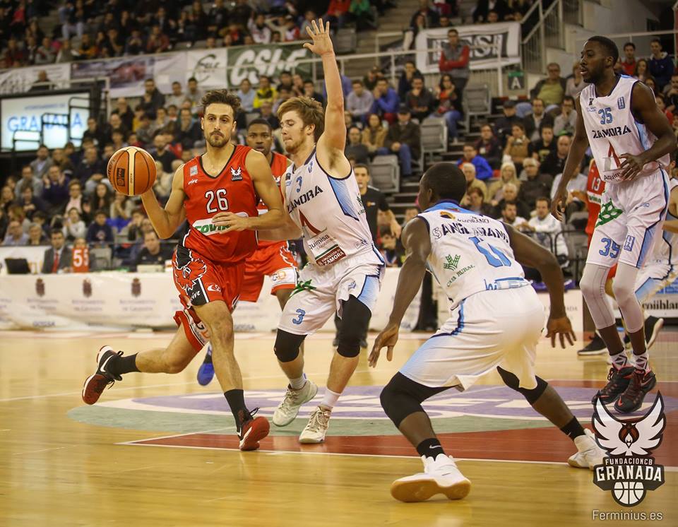 ZAMORA FIRMÓ SU TERCER TRIUNFO CONSECUTIVO EN LA CANCHA DEL LÍDER Sin duda la sorpresa de la jornada fue la protagonizada por Aquimisa Laboratorios Queso Zamorano tras imponerse en la cancha del líder Covirán Granada por 88-89 en un encuentro que no se decidió hasta los instantes finales gracias a una canasta postrera de Kody y donde Bortolussi erró dos tiros libres en el último segundo que podrían haber dado la victoria al conjunto nazarí. Curiosamente, la tercera victoria consecutiva de los zamoranos no les sirve para abandonar el último puesto de la tabla.