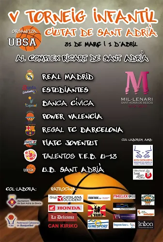 Este próximo fin de semana (31 Marzo-1 Abril) se disputará en la ciudad de Sant Adrià del Besòs la 5ª edición del Torneo Infantil de Sant Adrià que reunirá a la mayoría de grandes canteras del baloncesto español en un campeonato con ya mucha historia y que se ha consolidado, año tras año, como el principal torneo a nivel nacional en esta categoría infantil.