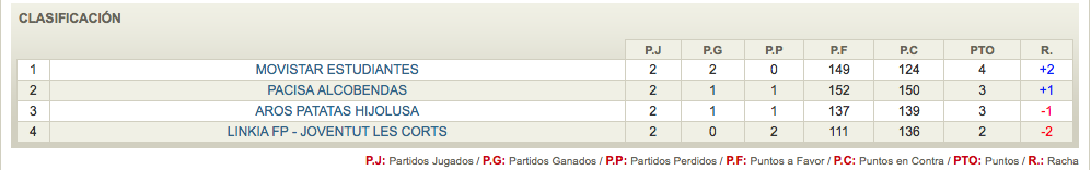 | Aros Patatas Hijolusa | Pacisa Alcobendas | Pacisa Alcobendas | Movistar Estudiantes | Pacisa Alcobendas |