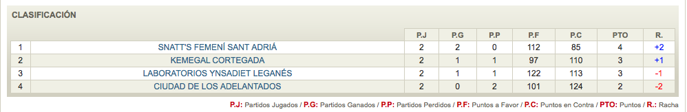 | Kemegal Cortegada | Ciudad de los Adelantados | Kemegal Cortegada | Snatt´s Femení Sant Adriá | Snatt´s Femení Sant Adriá |