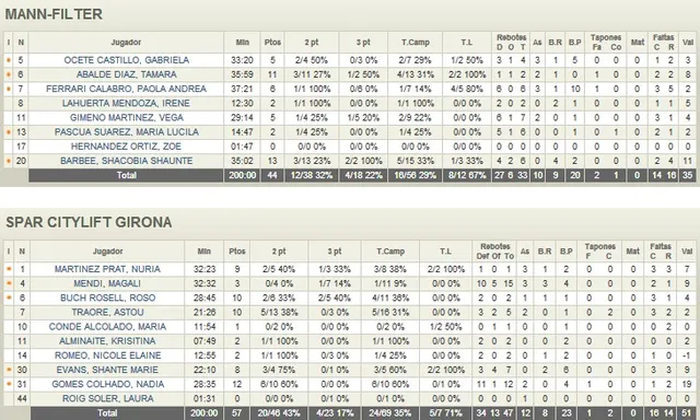 - La pintura tuvo dueña. La pívot brasileña Nadia Colhado (12p+12r+2a+1t, 19v) fue la jugadora más destacada del partido y se echó al equipo gerundense a la espalda para conseguir el pase a su 4ª final consecutiva. La experiencia de Nuria Martínez (9p+3a, 7v), el descaro de Rosó Buch (10p+2r, 4v) y el trabajo de la todoterreno Magali Mendi (3p+15r+3a+3rec, 9v), también resultaron fundamentales.