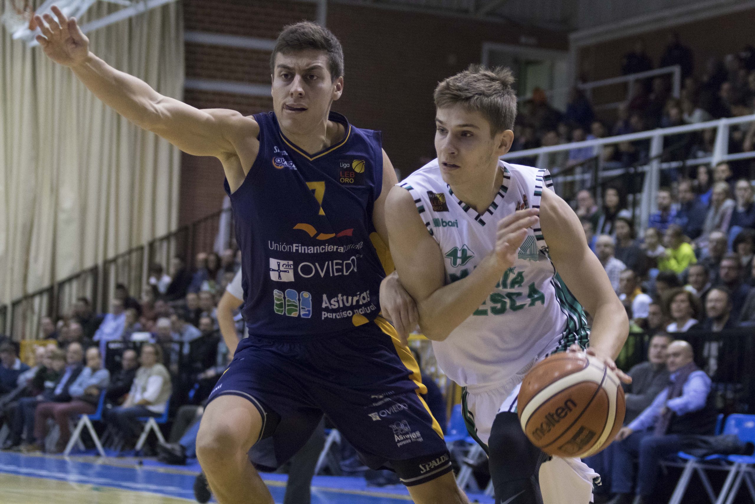 EL OVIEDO ES OTRO EN PUMARÍN Y eso se nota. Nada que ver los inicios del equipo de Carles Marco de local que como visitante. Salieron con hambre los hombres de Carles y con acierto para marcar distancias desde el primer momento, 13-4 en el minuto 7 del primer cuarto con un Salvó desatado (8 puntos), y mantuvieron ese buen tono hasta bien pasado el ecuador del segundo cuarto, como dejaba claro el 36-19 a falta de 4 minutos y medio para el descanso con una auténtica exhibición de sus dos bases, la anotación de Dani Pérez (10 puntos) y la dirección de Santana (3 asistencias) en ese momento.