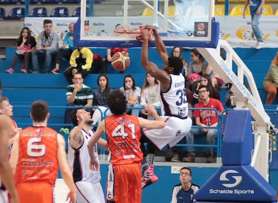 MÁS CON MENOS El Leyma Básquet Coruña se llevó una victoria importante en tierras melillenses a pesar de haber capturado menos rebotes y haber valorado menos que sus oponentes. Hasta 11 rechaces menos cogió el equipo gallego, cuyos interiores quedaron en un segundo plano en esta ocasión. Solo Sergio Olmos, con su interminable cuerpo, provocaba dolores de cabeza a los interiores del Melilla Baloncesto. Sin embargo, su acierto del 50% en tiros de tres ayudó a que ofensivamente el conjunto coruñés no perdiese la cara a su partido.