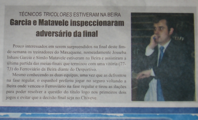 La verdad es que causó mucho revuelo el hecho de que mi entrenador ayudante y yo viajáramos a Beira a ver la semifinal (salió hasta en prensa, televisión, radio…), cosa normal en España, pero que aquí no acostumbran a realizar un seguimiento exhaustivo de los equipos y mucho menos si el cuerpo técnico de un equipo se tiene que desplazar.