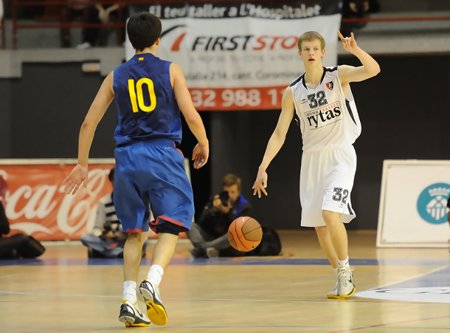 El partido arrancó como debía, con un Lietuvos volcado en acercarse al aro mediante la pareja Krestinin-Jankaitis, como finalizadores y creadores, especialmente ante la defensa de un menos móvil Andrade. La velocidad de los bálticos podía con un Barça en busca de referencias, con Pérez asumiendo muchos tiros pero sin acierto (0/3 en triples). La buena presencia de Jankaitis, ya fuera en pick&roll o tras rebote ofensivo, con diez puntos en estos primeros diez minutos, dejaba ya un marcador muy contundente en la primera contienda (7-22).