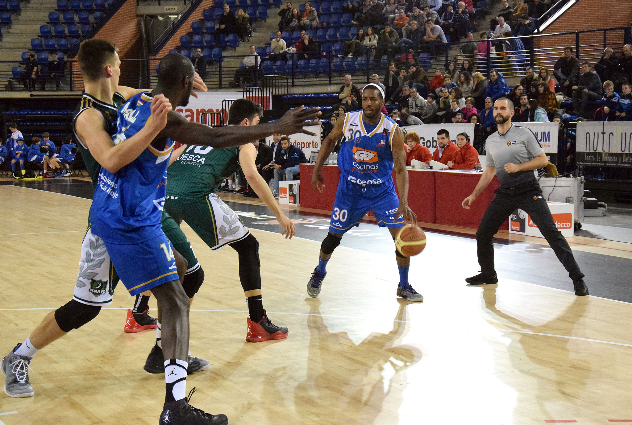PICK&ROLL DE CARLES BRAVO El jugador catalán de 36 años, único jugador que superó los 30 minutos de juego en el partido, estuvo muy fino jugando situaciones de bloqueo directo durante todo el partido, especialmente asistiendo. Muchas de las 12 asistencias que ha repartido el escolta del Cocinas.com fueron desde el P&R. Uno de los que más se aprovechó de este buen hacer de Carles Bravo fue Tunde Olumuyiwa, que con pases del escolta dejó algunas acciones espectaculares. La defensa de Huesca no era tampoco asfixiante sobre el jugador con balón y esto le daba tiempo a realizar buenas lecturas para dejar siempre a un compañero solo.