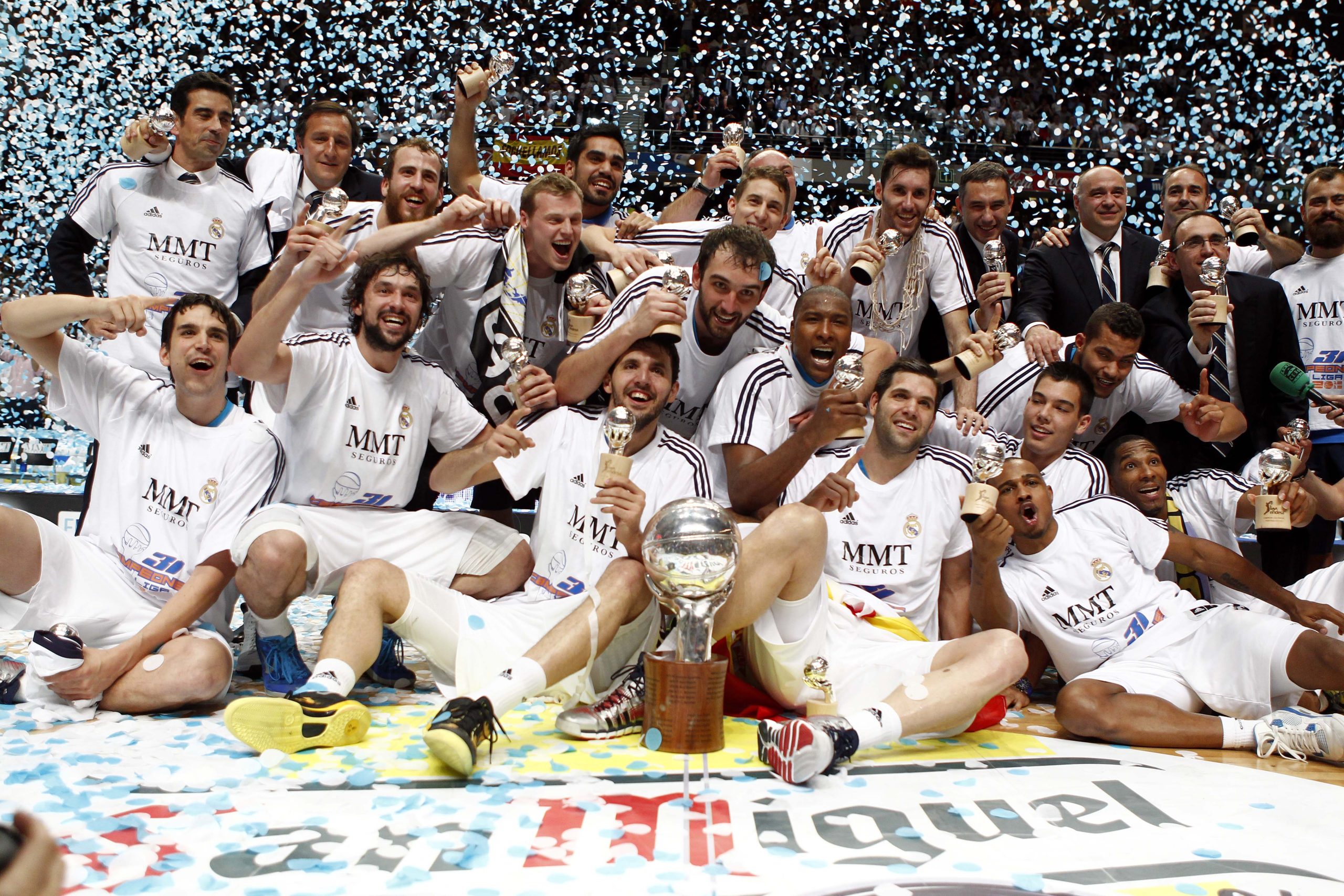 Y si la copa fue blaugrana, la Liga fue blanca. El Palacio de los Deportes vivió un quinto partido espectacular en el que el Real Madrid, liderado por el eterno Felipe Reyes, conseguía doblegar al Barça para alzarse con el título liguero por primera desde la 2006-07. Antes, la Liga había vivido una serie de cuartos de final increíble en la que Gran Canaria lograba colarse en semifinales ganando en Vitoria a Laboral Kutxa en el tercer partido y el CAI hacía lo propio con Valencia Basket después de un segundo partido increíble que acabó con 122-120 para los maños y la victoria en la Fuente de San Luis por 77-83. En semifinales, ni canarios ni aragoneses encontraron el camino para superar a los dos grandes, quedándose no solo sin el premio de la final, sino también, sin una eventual clasificación para Euroliga. Ya en la 2013-14, el Real volvió a ser quien golpeara primero, alzándose con la Supercopa en la final frente al Barça; además, en las últimas semanas del año, el conjunto blanco ha conseguido superar el récord de victorias consecutivas de Madrid de Ferrándiz, dando muestras de haberse convertido en un equipo prácticamente imbatible.