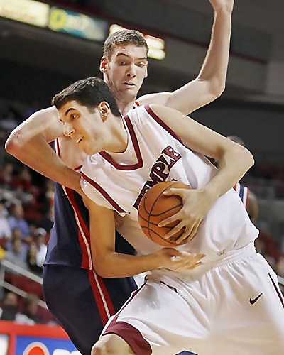 Su destino, la Universidad de Temple, donde completó el ciclo universitario destacando en este último año, donde se erigió en pívot titular en una temporada histórica en la que Temple se coló en el March Madness.