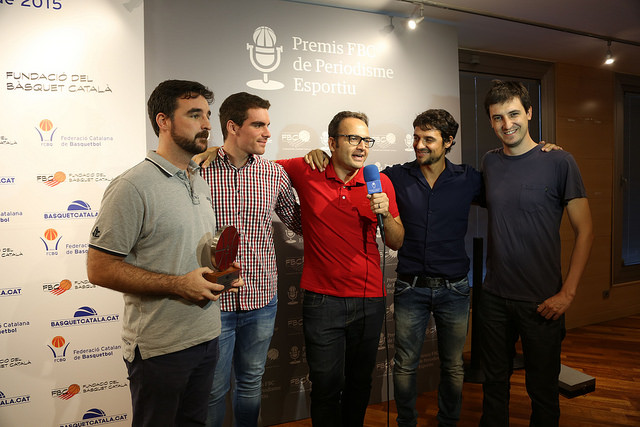 Los fundadores de Solobasket Carlos Jiménez y Santi Rodríguez junto con el redactor Borja Revert recogieron el premio de manos del Presidente de la FCBQ Joan Fa. "Agradecemos este premio a la Federació Catalana de Bàsquet y a la Fundació del Bàsquet Català y me gustaría hacer hincapié en el trabajo de la Fundació recopilando información y material para que conozcamos a fondo la historia y trayectoria de nuestro deporte sin olvidarse del baloncesto actual y así reconociendo a los que actualmente empujamos para que éste tenga la máxima difusión posible", dijo Carlos Jiménez. "Hoy somos cinco personas representando a Solobasket.com pero han pasado más de 300 colaboradores en nuestros casi 17 años de historia y actualmente hay más de 60 colaboradores de toda España, así que el premio es también para todos ellos", agregó. "Es un orgullo para Solobasket.com, y muy emocionante para mí personalmente, recoger un galardón de una organización como la Fundació Catalana de Bàsquet cuyo objetivo es difundir el baloncesto y el cual fue y sigue siendo una de las razones de nuestra existencia. Deseamos una larga existencia a la Fundació y a estos premios, una excelente iniciativa" comentó Santi Rodríguez.