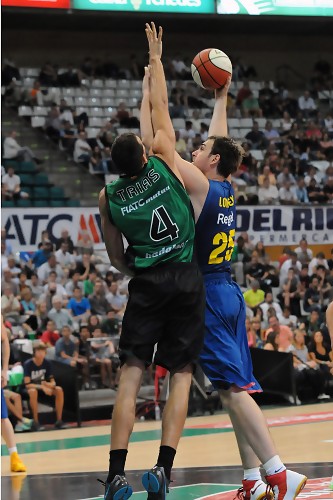 Muchas novedades ofreció el Fiatc Joventut. Cambio de cara al completo, con tan sólo tres jugadores de la pasada campaña (Oliver, Llovet y Trias), apostando por la cantera con la participación de Guillem Vives (’93), Albert Ventura (que formará parte del primer equipo esta temporada) y Álex Barrera (muñeca prodigiosa la suya) y mostrando el desparpajo que tanto le caracterizó ya el pasado año. Pese a la baja de una de las principales referencias del equipo, el norteamericano con pasaporte de Georgia Corey Fisher, el equipo de Salva Maldonado ha finalizado sus dos encuentros disputados ofreciendo muy buenas sensaciones. La gran virtud de la pasada temporada, un equipo sólido atrás y con facilidad para correr, se mantiene. Pero, además, este nuevo Fiatc Joventut ofrece unas prestaciones desde el exterior y en la zona que no tuvo en la anterior campaña. La llegada del voraz anotador Manny Quezada y del shooter Moses Ehambe dotarán al equipo de mucha más facilidad anotadora en el perimetral. Y con el joven aunque completo Ognjen Kuzmic (un 2’14) y el potentísimo Tony Gaffney, los verdinegros vuelven a ser capaces de controlar el rebote y anotar con facilidad bajo aro.
