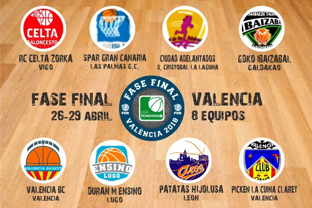 La Fonteta de Valencia acoge entre los días 26 y 29 de abril la Fase Final de LF2 con un total de 8 equipos compitiendo por 2 billetes de ascenso a la Liga Dia: RC Celta Zorka, Spar Gran Canaria, Ciudad de los Adelantados, GDKO Ibaizabal, Valencia BC, Durán Maquinaria Ensino, Patatas Hijolusa y Picken La Cuina Claret.