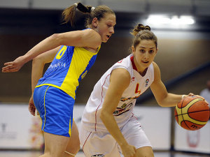 Las ucranianas salieron a la cancha mucho más enchufadas, logrando un 8-0 de parcial inicial que anunciaba la dificultad del partido. Sin defensa, España sufrió durante el primer cuarto, que concluyó por debajo tras un parcial de 19-27. La reacción española llegaba en el segundo cuarto partiendo desde atrás, logrando reducir la sangría de puntos recibidos, se lograba reducir la diferencia en el marcador hasta la mitad, 39-43, después incluso de haberse situado por delante con un triple de Gimeno.