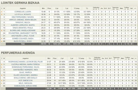 Pocos minutos le hicieron falta a Roundtree y a Paula Ginzo para hacer acto de presencia en el partido. La ala-pívot americana y la pívot nacida en Cantabria pusieron la máxima para Lointek Gernika (21-15, min. 13) justo antes de que se diera paso a un intercambio de canastas, con tiros abiertos desde media distancia, que llevaron la firma de Maite Cazorla y la propia Ginzo. Las exteriores de Perfumerías Avenida nutrieron a Hof y a Milic para sostener a su equipo contra las embestidas de Bjorklund y Rosó Buch -quien, pese a no deslumbrar como el día anterior, ya contaba con 7 puntos y 3 rebotes al descanso-. Y ya al filo de la media parte, dos triples de Andrea Vilaró le dieron la vuelta a un marcador que hacía varios minutos que reflejaba la ventaja de las de Mario López (31-32).