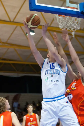 Sin embargo, podríamos hablar de su compañero de selección, el pívot del 94 Francesco Candussi, como el jugador con más potencial de la squadra italiana y, quizás, de todo el campeonato. Con sus 2.10 de estatura ha sido el auténtico baluarte en la pintura del equipo de Stefano Bizzozi. Tiene muy buenos fundamentos y una corpulencia bastante considerable, unida a una gran condición atlética. Puede tirar y anotar cómodamente desde hasta tres o cuatro metros, y su juego al poste denota talento y conocimiento del juego de espaldas a canasta.