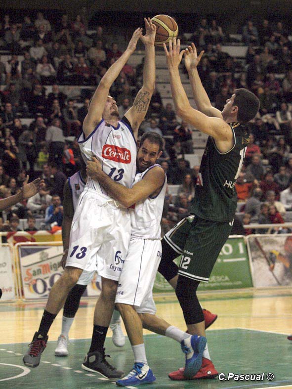 FRANCOTIRADORES Eso parecían hoy los jugadores de Huesca. Una y otra vez acribillaban el aro desde la línea de 6.75. Hasta 16 triples anotó Peñas, además con un magnifico porcentaje de 16/38. Otras veces el juego interior quedaba solo en el ataque, pero esta vez los exteriores han tenido un gran día en el lanzamiento. Y si en el lanzamiento exterior Huesca ha superado en 16-1 a Palencia, en el rebote también el dominio local ha sido abrumador. 47-31, hasta 21 rebotes ofensivos consiguieron los jugadores oscenses. De esta forma era muy difícil dejarse escapar un partido donde la defensa, la intensidad y el acierto lo ha puesto siempre el mismo equipo.