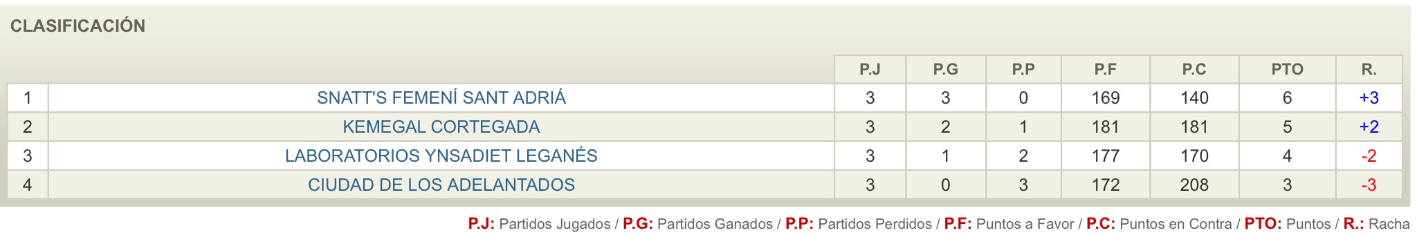 Bonito duelo entre dos equipos que buscaron la victoria, las primeras querían ser líderes de grupo, mientras que las segundas buscaban clasificarse, pero el premio fue para las catalanas. Después de remontar y hacer un gran trabajo en el tercer cuarto dejando a las madrileñas en solo 5 puntos. Nuria Giménez y Laura Peña fueron las mejores de Sant Adria con 7 y 9 puntos respectivamente. En Leganés Christina Marinacci Y Ashley Ezequiel se quedaron en 11 puntos cada una.