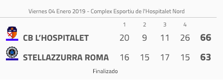 C.B. L´Hospitalet 66-63 Stellazurra ROma