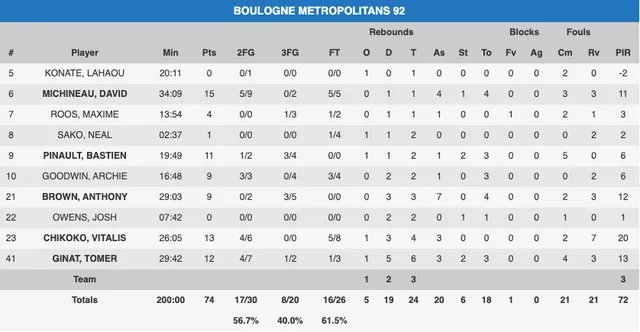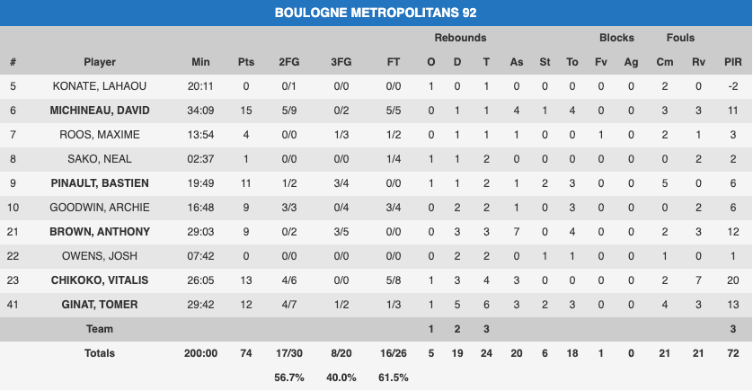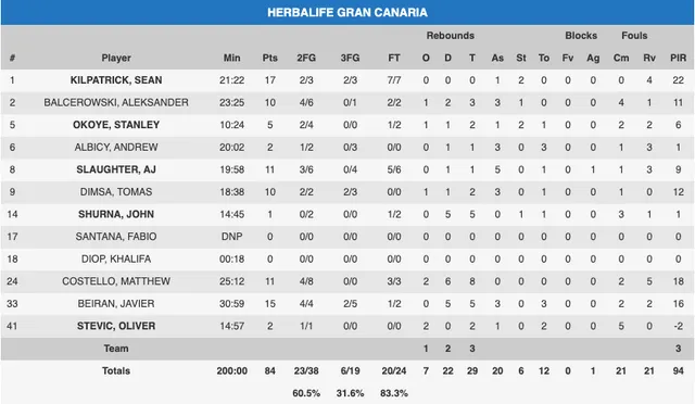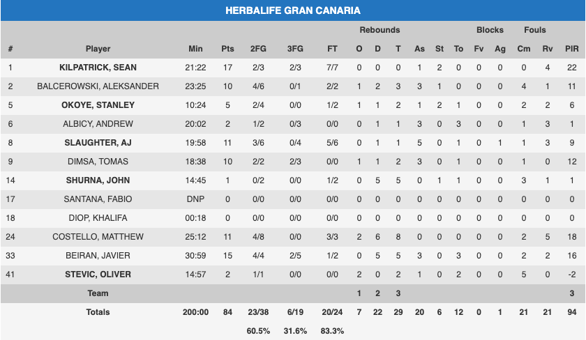 Rendimiento coral de los jugadores que participaron en la rotación de Fisac, en la que la mayoría aportó réditos positivos y jugaron con una actitud positiva y con gran intensidad. Hay que destacar el gran partido ofensivo de Balcerowski, al que se le vio cargado de confianza y ofreciendo detalles poco habituales en el pívot polaco. También Kilpatrick dio un paso adelante en la anotación. A pesar de las buenas sensaciones, el Metropolitans nunca se iba del partido y su gran porcentaje en tiros de campo. La defensa gala no permitía que el Granca tirara de tres como es habitual (menos tiros y malos porcentajes), pero no encontraron problemas para anotar en la zona, tanto con sus interiores (Balcerowski y Costello), como con sus exteriores (Kilpatrick, Okoye y Slaughter).