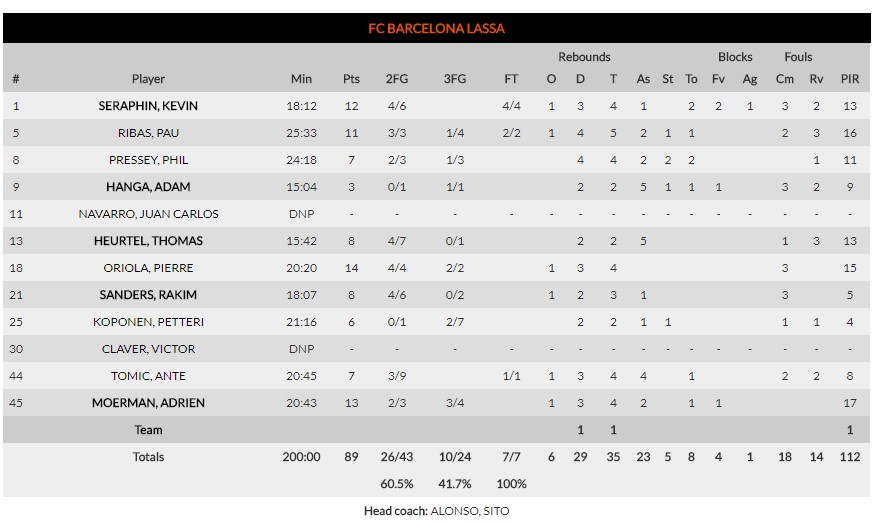 Otro de los aspectos que describen la buena versión blaugrana de la mala es cómo se pasan el balón. Hoy, ejercían el más altruista de los fundamentos del baloncesto con una gran perfección, para encontrar siempre un pase de canasta, también desde cerca, a pesar del picor y alergia de alguno por pisar la zona pintada. Mantenían así los locales las ventajas, alejaban fantasmas y se acercaban a la victoria, a pesar del tímido despertar de Dubljevic. Le intentaban los visitantes buscar las vueltas de la versión mala local, pero hoy no había sitio para descalabros. Seguían haciendo bien las cosas detrás los de Alonso, para recuperar marcadores que terminaran con la contienda. Un mate del hoy feliz Pressey devolvía el +21 (81-60 min. 35).