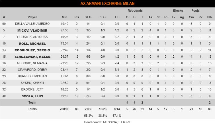 Durante los primeros veinte minutos, el Milan anotó 45 puntos, demasiados para lo que está acostumbrado a recibir el Barça. El segundo cuarto del Chacho disparó los números de los italianos e hizo muy difícil la tarea de los blaugranas. En la segunda parte, los culés recibieron sólo 35. Salieron más ambiciosos tras el descanso y eso hizo que aguantaran hasta el final permitiendo 80 puntos a un rival que iba camino de anotar 90.