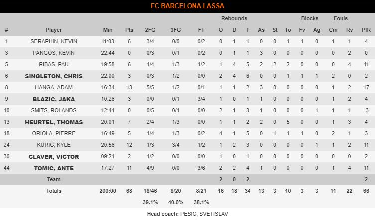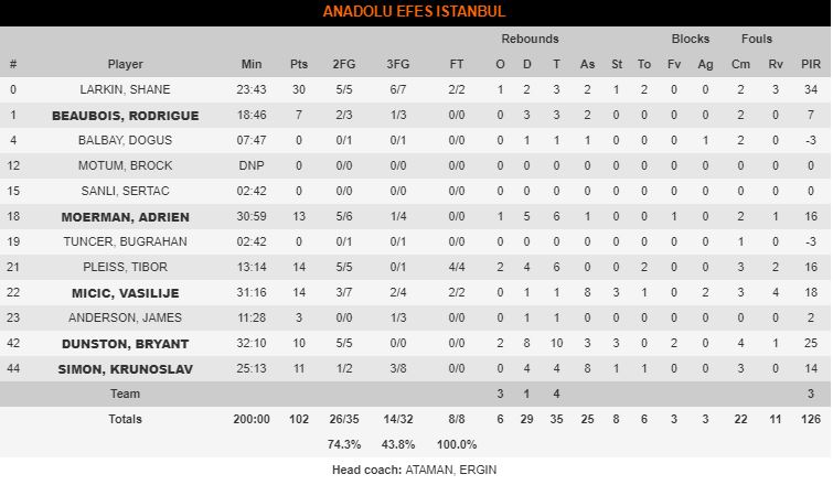 Parcial 0-17 para Efes: cuando el partido aún estaba igualado, los turcos anotaron 17 puntos de forma consecutiva sin que el Barça consiguiera anotar. Esto quebró por completo a los culés que no pudieron reponerse.