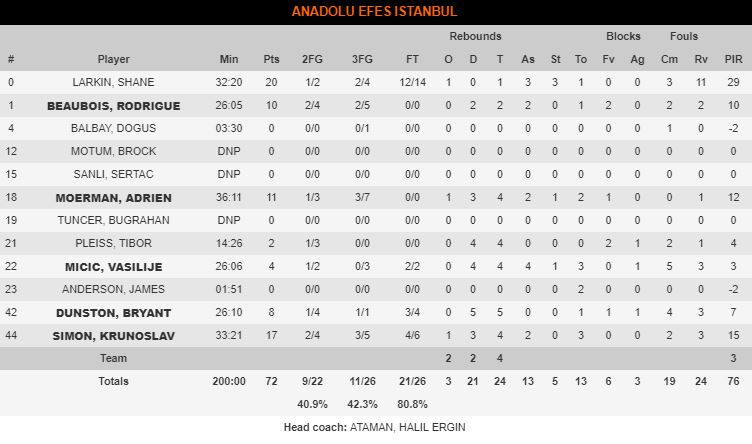 Pesic dio la orden de no cambiar en los bloqueos en caso de ser posible. Así la defensa de los blaugranas tuvo que estar menos pendiente de las desventajas en los cambios defensivos. Esto se transformó en un arma de doble filo, ya que el Efes logró castigar las ayudas largas con siete triples en el primer período para un parcial de 0-14 a favor de los turcos.