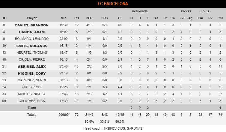 El Barcelona disfrutó de momentos de buen baloncesto y otros de nula respuesta ante el entramado táctico de Dusko Ivanovic. Estupor. Añoranza. Penumbra. Todo eso retumbó en la cabeza de los jugadores culés, pero también lo hicieron las ansias de victoria. Mirotic volvió a ser el eje anotador del equipo de Saras. Su consistencia debajo del aro se antojó imposible de defender para sus rivales, que veían como la pizarra del entrenador lituano no hacía otra cosa que facilitar la labor al montenegrino. Culminó el encuentro dando la victoria con un tapón a Alec Peters, como si con liderar en ataque no fuera suficiente.