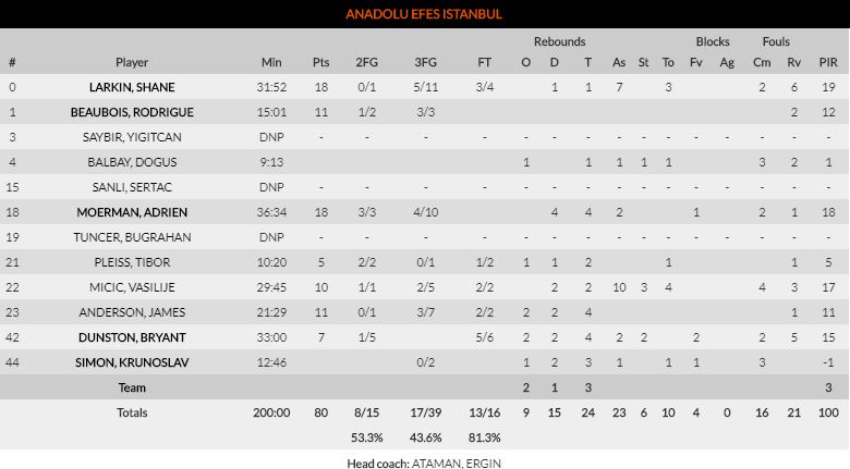 Por el lado de Efes, mantuvo su intensidad y también su acierto. Como era de esperar, buscaron de forma constante a Shane Larkin, quien castigó desde la larga distancia en dos ocasiones durante el primer período.