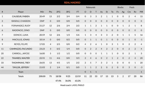 Baskonia acabó cediendo después de tener el control durante todo el partido. Los vitorianos fueron superiores durante gran parte del partido y pudieron romperlo en algún tramo, último cuarto inclusive (61-68). Un partido correcto de Granger y una gran sorpresa del argentino Vildoza desde el banco bastaron para que las riendas estuvieran en manos de los de Pedro Martínez. Sin embargo, cuando mejor estaban las cosas para ellos, sufrieron una desconexión por las alternancias en defensa del Madrid y no volvieron a ver aro, a pesar de contar con hasta 4 rebotes ofensivos en el último minuto, de los que debieron sacar algo más.