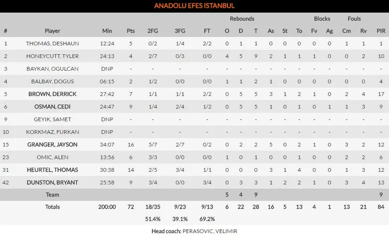 A partir de aquí, y en base a la irrupción de Rice y Tomic en el partido (anotando 9 tantos entre ambos en este primer cuarto), el conjunto culé fue capaz de acercarse levemente (15-11) Los locales no lograban mantener un juego constante, y solo los triples de Osman hacían que nos fuéramos al final de estos minutos con un 21-15. Las sensaciones de los turcos no eran las mejores, pero las de su rival eran aún peores, mostrándose ambos conjuntos de manera irregular.