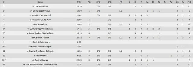 Aunque en Liga Endesa sus números no están siendo igual de efectivos, es cierto que también ha ganado en minutos, y que, además, la dinámica del equipo en la competición doméstica es un caso aparte. Cabe apuntar que, en el partido ganado ante FC Barcelona en cuartos de Copa del Rey, el jugador fue pieza importante al anotar 12 puntos, capturar 7 rebotes y tener una efectividad del 67 % en triples.