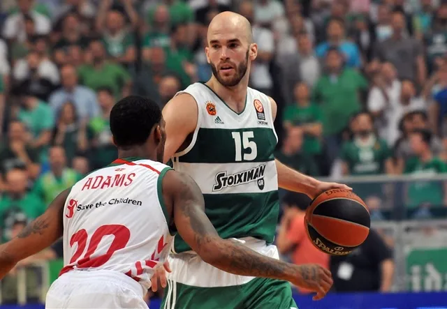 El segundo cuarto empezaba con un paso adelante del veterano Fotsis. Dos canastas suyas daban la vuelta al marcador en lo que terminaría siendo un espejismo. Tras abrir su parcial con una canasta de James, Laboral Kutxa tomaría el control del partido hasta lograr los 10 puntos de ventaja a 3:20 del descanso, 28-38. Dos tiros libres de Bertans parecían romper definitivamente el encuentro y predecían una victoria azulgrana en Atenas. Aun así, un mito viviente del baloncesto europeo aun no había dicho su última palabra. En el que a la postre sería su último partido de Euroliga, Diamantidis ha vuelto a echarse a su equipo a la espalda. Un triple suyo ha sido el que ha dado esperanzas a la hinchada local al reducir a cinco la desventaja al final del segundo cuarto: 37-42. Baskonia seguía acariciando la gloria, pero aun quedaba mucho por jugarse.