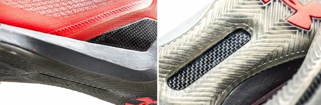 Algo que llama la atención de forma inmediata es la dosis de fibra de carbono que podemos apreciar tanto en el lateral superior de la zapatilla como en el centro de la suela que, presuponemos, está ahí para proporcionar un soporte adicional.