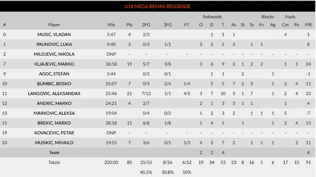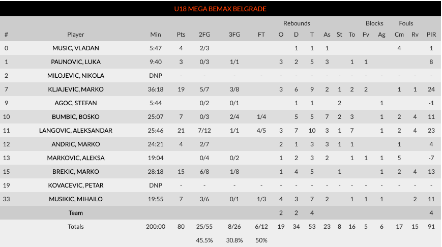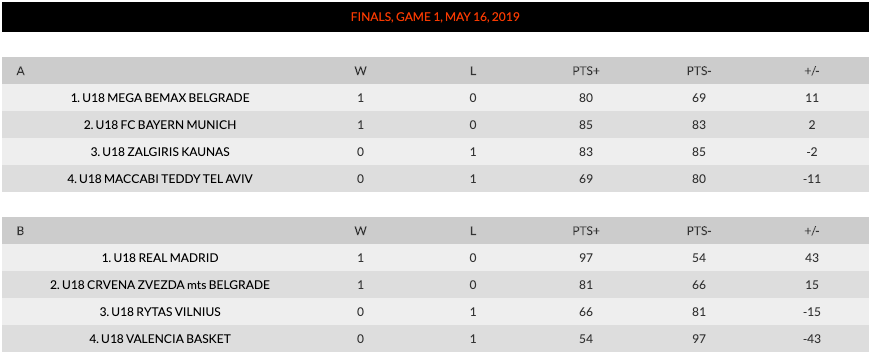 A primera hora de la mañana, caía derrotado el Maccabi frente al Mega Bemax pese a un increíble actuación de Deni Avdija con 27 puntos, 14 rebotes y 6 asistencias (+32). El trío de oro formado por Aleksandar Langovic, Marko Kljajejic y Marko Brekic, anotó para el equipo de Belgrado 55 de los 80 puntos de su equipo. Kljajevic fue el más valorado con 19 puntos y 9 rebotes para el +24.