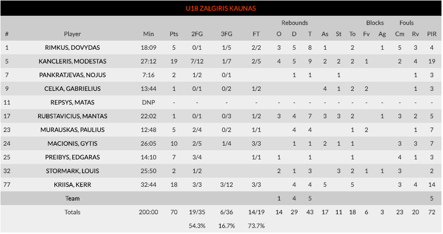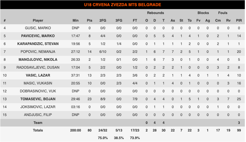 Otros destacados: Aleksa Markovic – 25 de valoración (14 puntos y 8 rebotes)