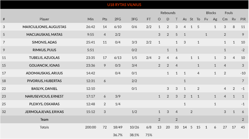 15:00 RYTAS VILNIUS – VALENCIA BASKET