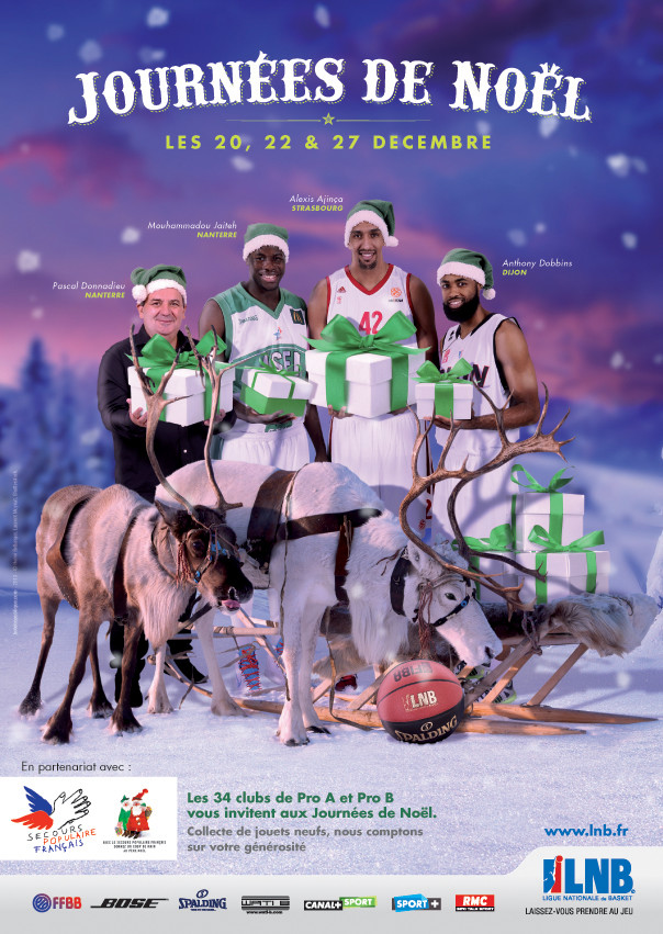 Comienzan en Francia las jornadas de navidad. Como cada año, la LNB organiza una campaña que aúna la fiesta propia de estas fechas con una iniciativa solidaria. De esta manera, la propia liga y los clubes invitan a los espectadores que asistan a los partidos que lleven algún juguete con el fin de poder repartirlo entre los niños más necesitados del país galo.