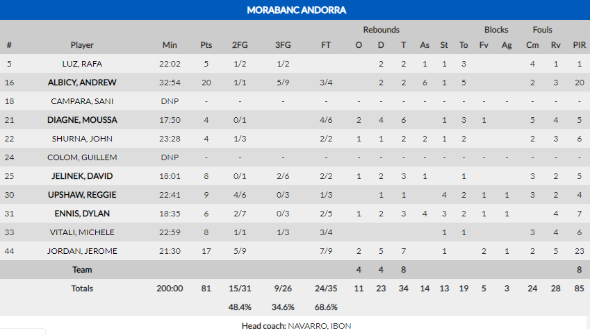 2. Siva vs Albicy. Fueron los dos grandes nombres del partido, y los líderes del juego para ambos equipos. Por un lado, Peyton Siva fue casi el culpable de la victoria alemana, con 21 puntos y 3 asistencias el jugador más destacado y que desequilibró a Andorra. Por el otro, Andrew Albicy. El base francés, guía de los andorranos, estuvo a punto de hacer realidad la remontada en el último cuarto con varios triples consecutivos y cosechando otra gran actuación en Eurocup, con 20 puntos, 2 rebotes y 6 asistencias.