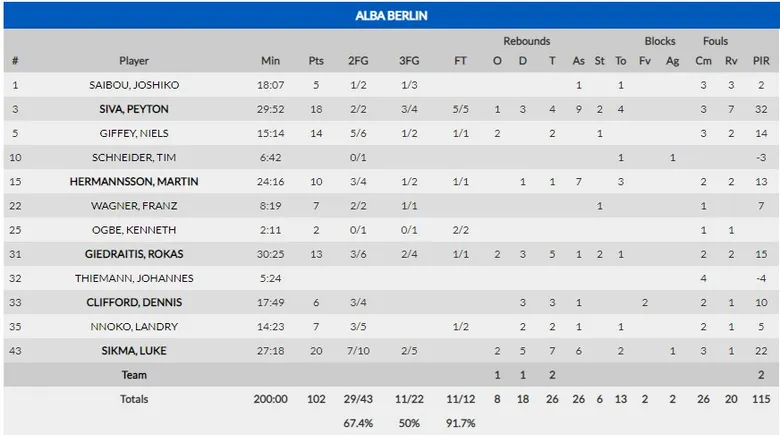 Alba ganó por los 59 puntos de la primera parte. Parece de perogrullo decir esto, pero no lo es tanto si vemos que MoraBanc Andorra se puso a dos puntos a falta de 47 segundos. Es cierto que tuvieron opciones y que podríamos hablar de que el 2+1 de Hermannsson fue más decisivo que los 99 puntos anteriores, pero lo cierto es que a los Ibon Navarro no le llegaron los 54 puntos de la segunda por esa espectacular primera parte de los de Berlín. Algunos datos de esos primeros veinte minutos son casi increíbles como el 25 de 34 en tiros de campo con 7 de 9 en triples, o los seis jugadores con 6 o más puntos anotados para los alemanes.