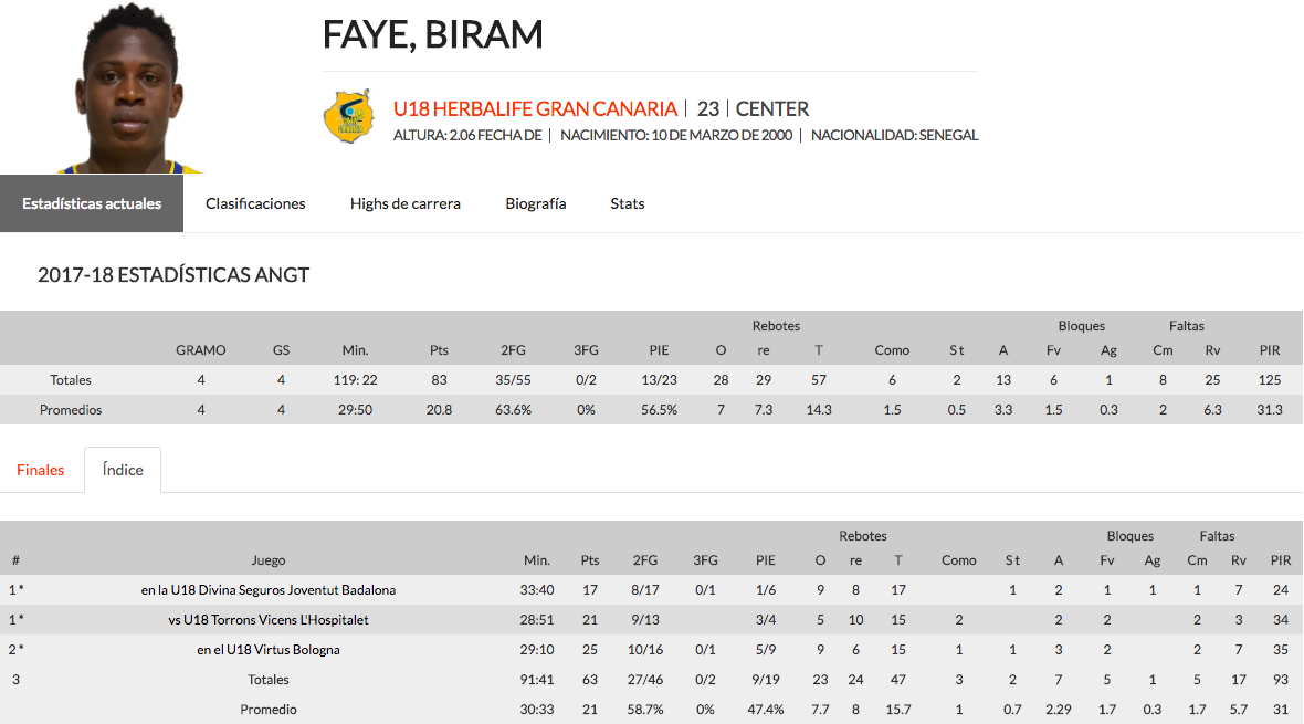 Después de tres días de mucha intensidad en ANGT 2018 L´Hospitalet se han podido dar a conocer de forma detallada las estadísticas individuales de cada jugador. Desde Solobasket queremos dar a conocer dicha información y así mostrar a ese jugador diferente, capaz de cambiar un partido en segundos y que es capaz de liderar a su equipo en los momentos más calientes.