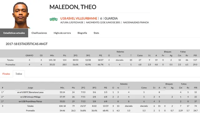 Con tan solo 16 años, Maledon ha sido uno de los jugadores más determinantes en toda la competición. En sus estadísticas podemos ver que el jugador francés fue aumentando progresivamente sus números: