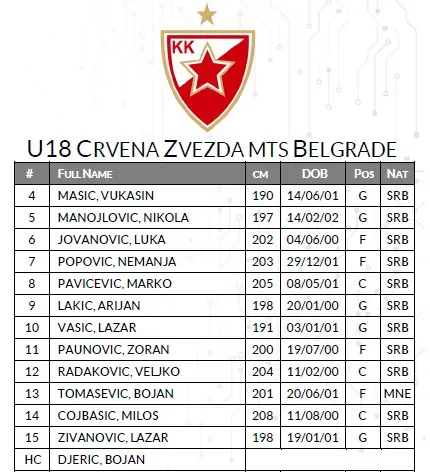 15:00 U18 Crvena Zvezda mts Belgrade vs. U18 Divina Seguros Joventut Badalona