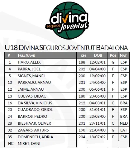 15:00 U18 Divina Seguros Joventut Badalona vs. U18 Stellazzurra Rome
