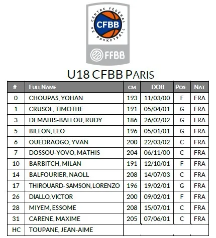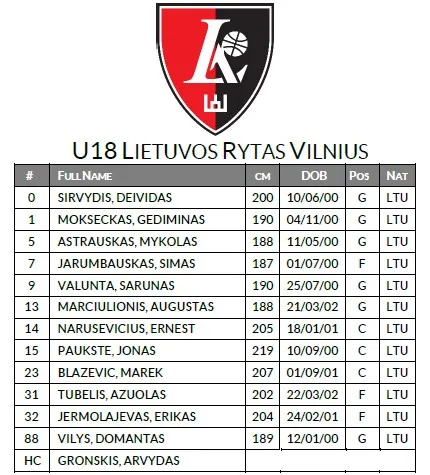 09:00 U18 Lietuvos Rytas Vilnius vs. U18 CFBB Paris