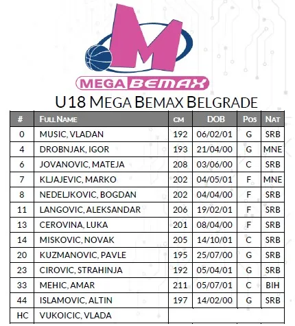 11:00 U18 Lietuvos Rytas Vilnius vs. U18 Mega Bemax Belgrade