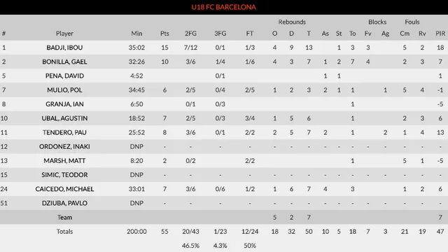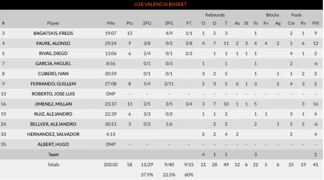 - Iosif Koloveros (27 puntos y 4 rebotes) +30
