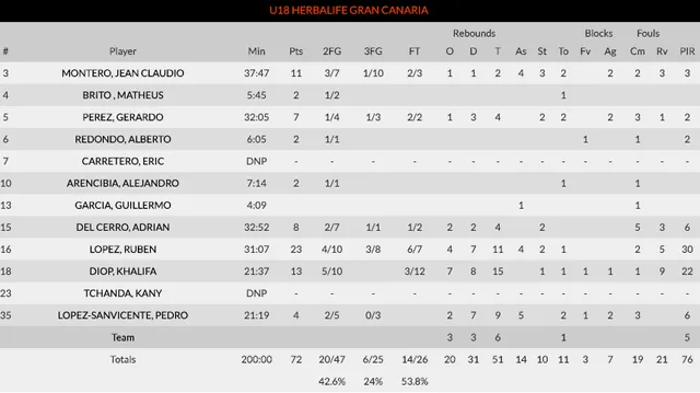 - Gerardo Pérez (14 puntos y 4 rebotes) +20